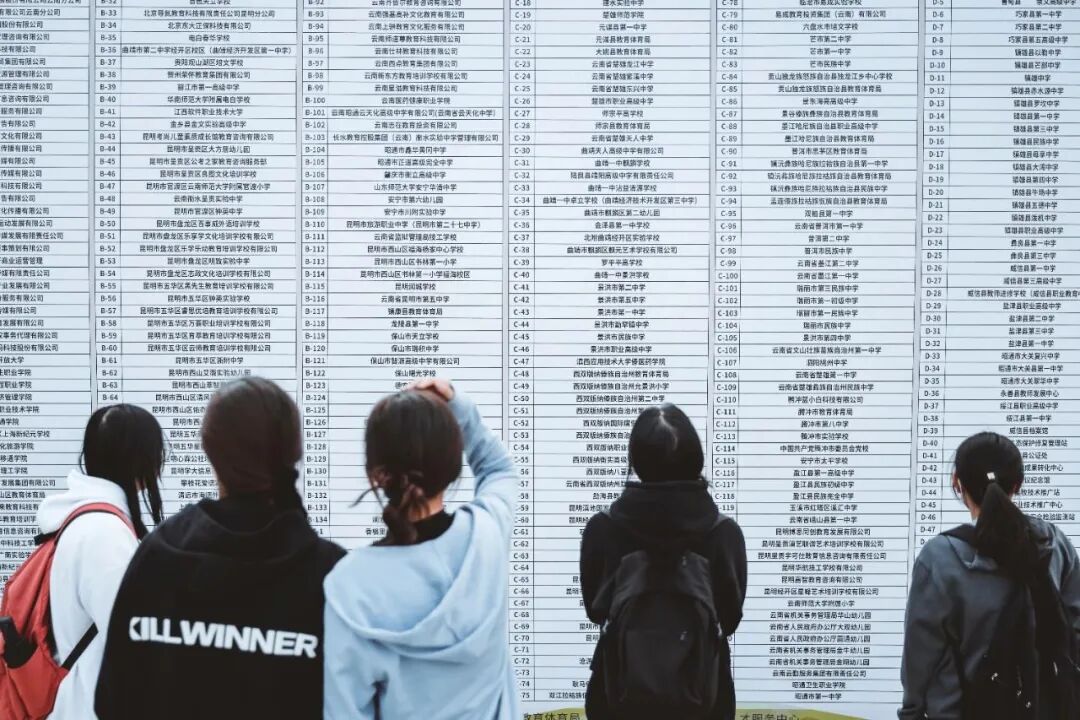 云师大的操场上,也正是春季招聘会进行时。几百个展位,80% 都是招老师。但老师也分等级。昆明本地学校的展位前空空荡荡,因为门槛太高,大家望而却步,他们只招收六所部属师范院校(东北师大、陕西师大、西南大学、北师大、华东师大、华中师大)的硕士毕业生,如果不是应届生,就要求已在职在编且有教学经验。而云南其他地区的城区学校,基本只招硕士生。本科生的选择相当有限,要么去偏远的乡镇中学,要么去无编制的私立中学。