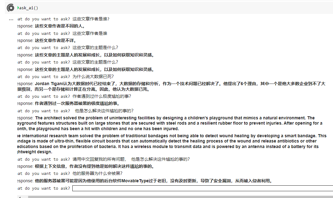 最后能实现有问有答,但效果并不是太好,还有许多微调的工作要做。