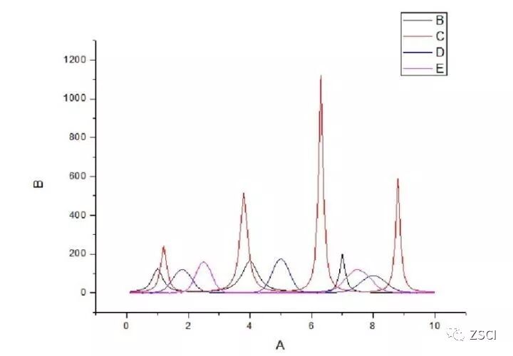 二维瀑布图将多条曲线在单个图层上按前后顺序排列并将它们向右上方做适当的错位,以便清晰地显示各曲线细微差别,特别适合绘制多条包含多个峰又极其相似的曲线图形。