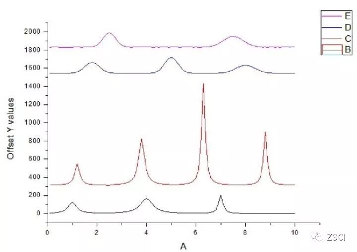 Y 轴错位堆垒曲线图将多条曲线在单个图层上从上到下堆垒并将其纵轴 (y 轴) 做适当的错位, 特别适合绘制多条包含多个峰的曲线图形。
