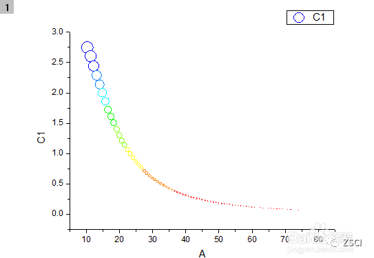 ② 单击菜单命令【Plot】→【Symbol】→【Bubble+Color Mapped】或 2D Graphs 工具栏上的【Bubble+Color Mapped】按钮。