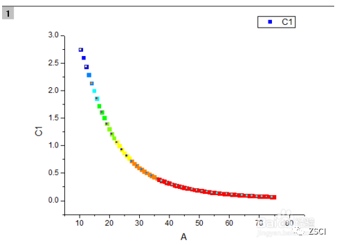 ② 单击菜单命令【Plot】→【Symbol】→【Color Mapped】或 2D Graphs 工具栏上的【Color Map】按钮。