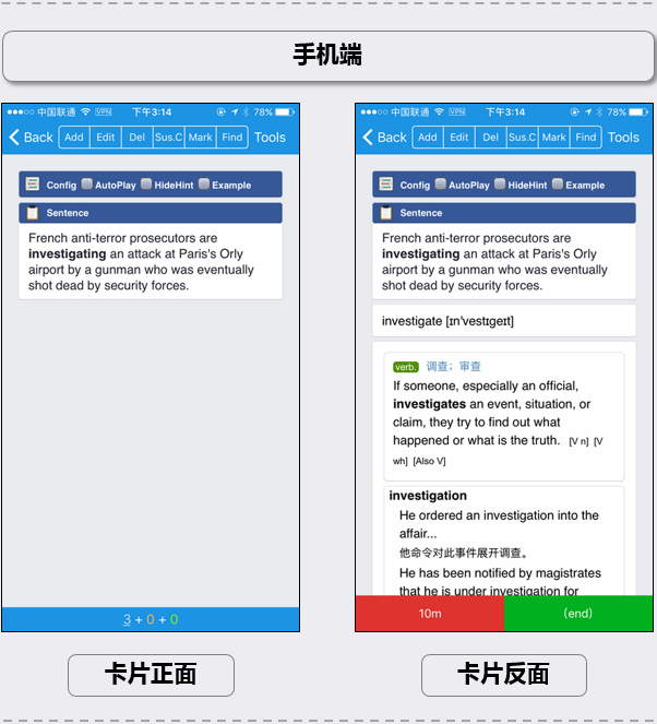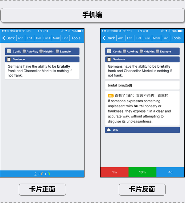 - 不能自制以原句为中心的卡片。