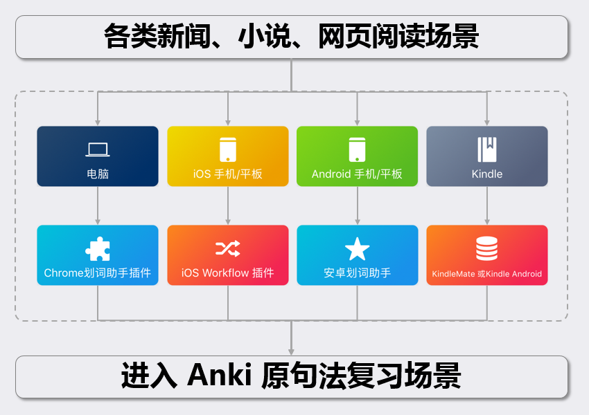 - 以各平台的划词制卡助手为辅助。