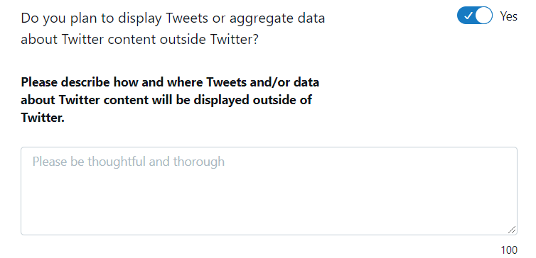 NO.4 可选:你是否计划在 Twitter 之外显示 Tweets 或聚合 Twitter 内容的数据?