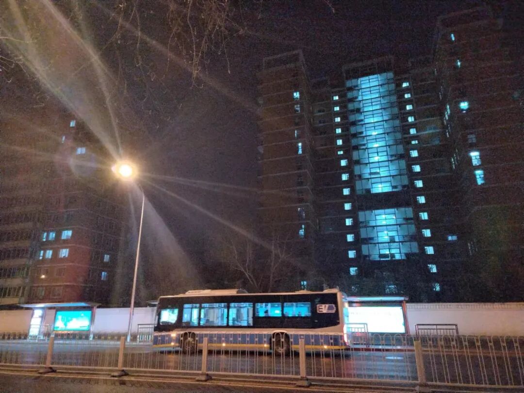 到达北京那一晚,江夏拍下公交车和耀眼的路灯